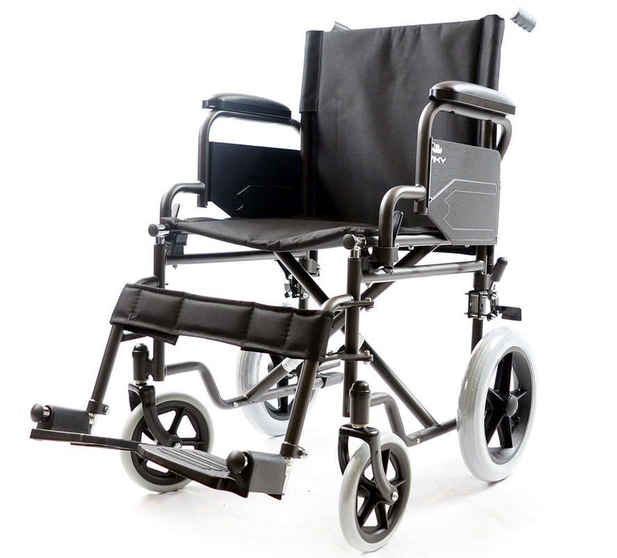 • Telaio in acciaio a crociera semplice - portata massima 120 kg. - peso carrozzina 17.5 kg.